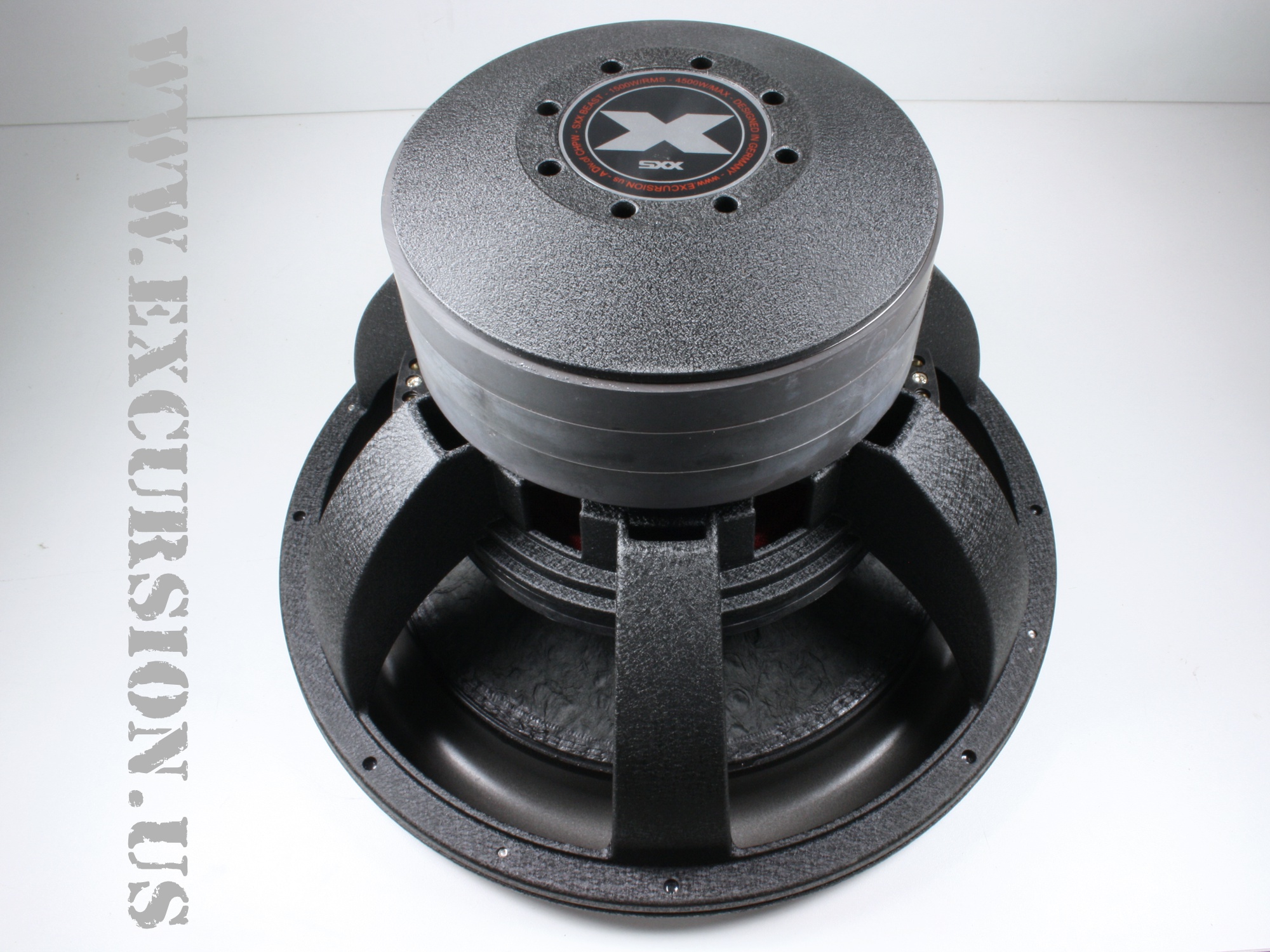 SXX.v2 mit 40% mehr Kraft und X-Max zwangen uns, das Feder- und Aufhängungssystem auf AMG-Level umzustellen. Neue HDR-Schaumstoffsicken (70:5 Pressung @ High Roll) finden den idealen Mittelweg zwischen den unterschiedlichen Welten von EXCURSION XXX und MXT. Mit roten Faden handvernäht an unverwüstlichen Kraft High Pulp Mebranen geben ein Versprechen unter allen Umständen zu halten. Mit blutroten Nähten und Zentrierungen freuen wir uns ein neues Stil-Element im tiefschwarzen Hammerschlagkleid der SXX.v2 gefunden zu haben. Sichtbare Nähte verkleinern unserer inverse Dustcaps bei mehr an Tiefe und Fläche, bei welchen sich mit der belüfteten Zwischenkammer der beliebter Klang Charakter erhalten bleibt für welche unser XENON Beast bekannt sind. Im Kontrast mit den aus der MXT Serie bekannten und mit 4 Logos gelaserten Aluminiumdruckguss Ring war die Anforderung gesetzt den passenden Rahmen und Identität für den neu definierten SXX.v2 AMG Level zu schaffen. Daher sind wir nach sorgfältiger Recherche und nötigen Modifikationen sehr zufrieden mit eine Art von 6 Drachenklauen ein passendes Kleid für die neuen SXX.v2 Generation der Marke EXCURSION präsentieren zu können. Mit einer vergrößerten 8,5-Zoll-Zentrieraufnahme und passenden Montagering bieten die neuen SXX.v2 Körbe bei höchster Präzision in Verarbeitung die perfekte Aufnahme für unsere neuen blutroten linearen Doppel Zentrierungen. Obenseitig eingewebt und ebenso doppelt ausgeführten 12GA Kabelzuleitung enden an EXCURSION Military standardmässigen 8GA Power-/Lautsprecherterminal die mit Ihren Madenschrauben allen Spannungen gewachsen sind und im Design einen optionale Erweiterung mit 8GA Doppel Terminal (HPST8 - Hollywood ENERGETIC) berücksichtigen.
